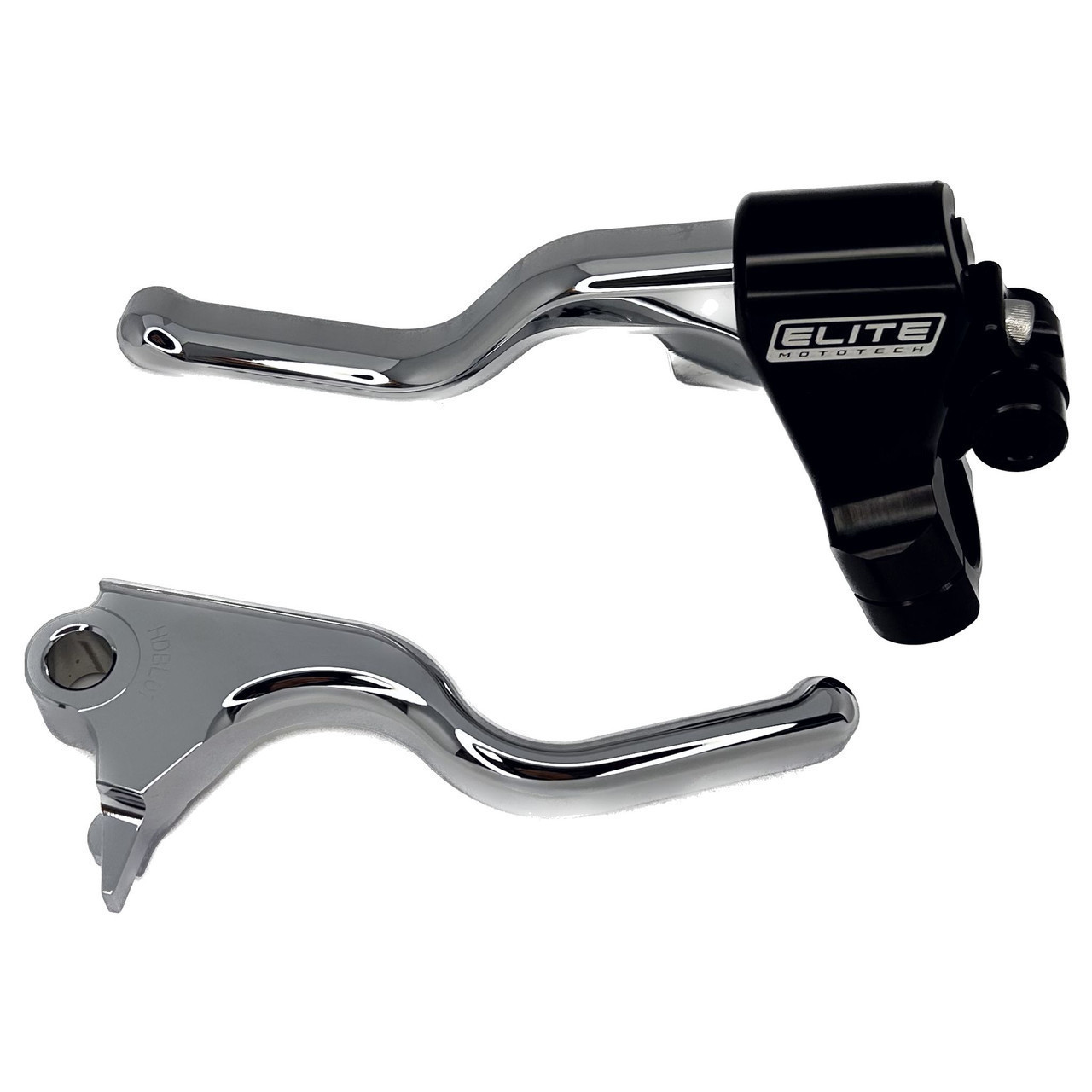 The Elite Mototech EZ-PULL Clutch Lever is a patented, first-of-its-kind design engineered to deliver a 30% easier clutch pull compared to stock Harley-Davidson levers. Precision CNC-machined from 6061 billet aluminum, each lever features dual sealed ball bearings, a custom-machined pivot bolt, and integrated lubrication reservoirs for consistently smooth, low-maintenance performance. Designed to work seamlessly with stock Harley clutch cables, it installs easily with no modifications required. The EZ-PULL combines superior comfort, control, and reliability — setting the standard for performance clutch levers worldwide.